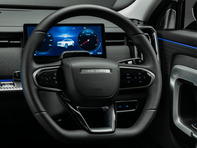 The cabin blends luxury ambiance with heated front and rear seats, steering wheel and 4-way lumbar support for the driver. Advanced technology is continuous throughout the JAECOO 7's cabin, with a SONY 8 speaker sound system coupled with PM2.5 Air Purification.
